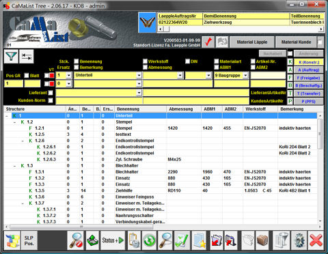 Betriebsmittel-Stücklisten durch die Konstruktion mit Steuerung der einzelnen Positionen über Gruppenrechte für die entsprechenden Abteilungen der Arbeitsvorbereitung und Materialbeschaffung. |